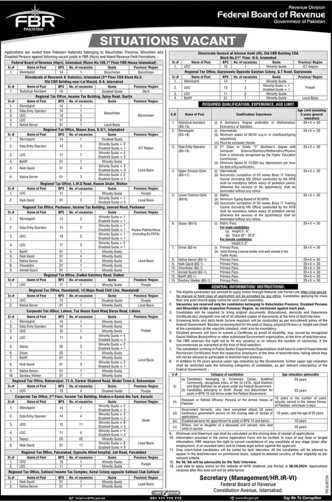 Looking for a stable government job in Pakistan? The Federal Board of Revenue FBR has just launched fresh opportunities for the year 2025 here is your step-by-step guide to get in!