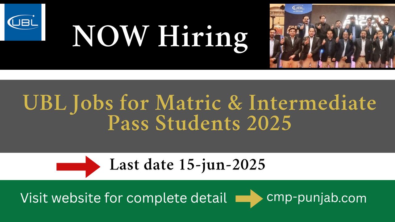 UBL Jobs for Matric & Intermediate Pass Students 2025 A Great Opportunity for Fresh Youth